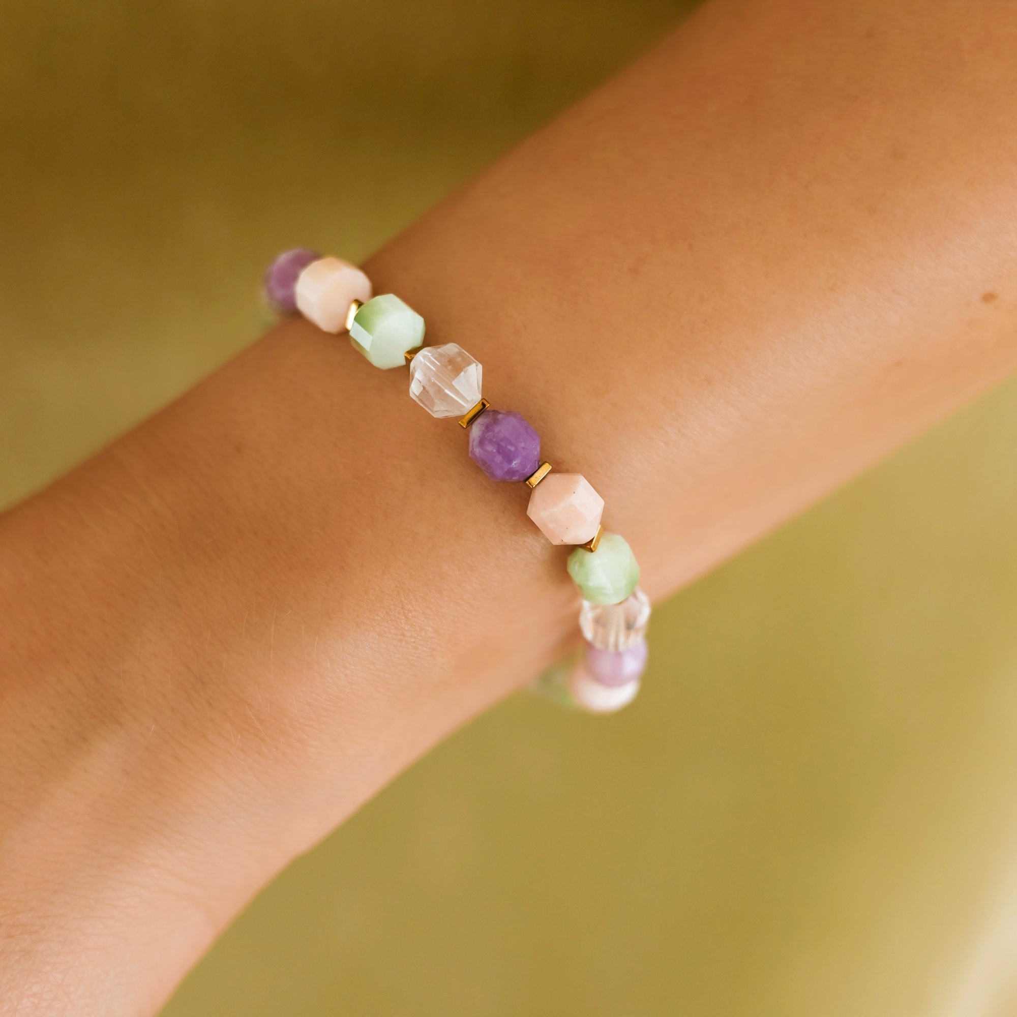 Bransoletka Pastel Mama – Kryształ górski, Lepidolit, Opal peruwiański, Kocie oko