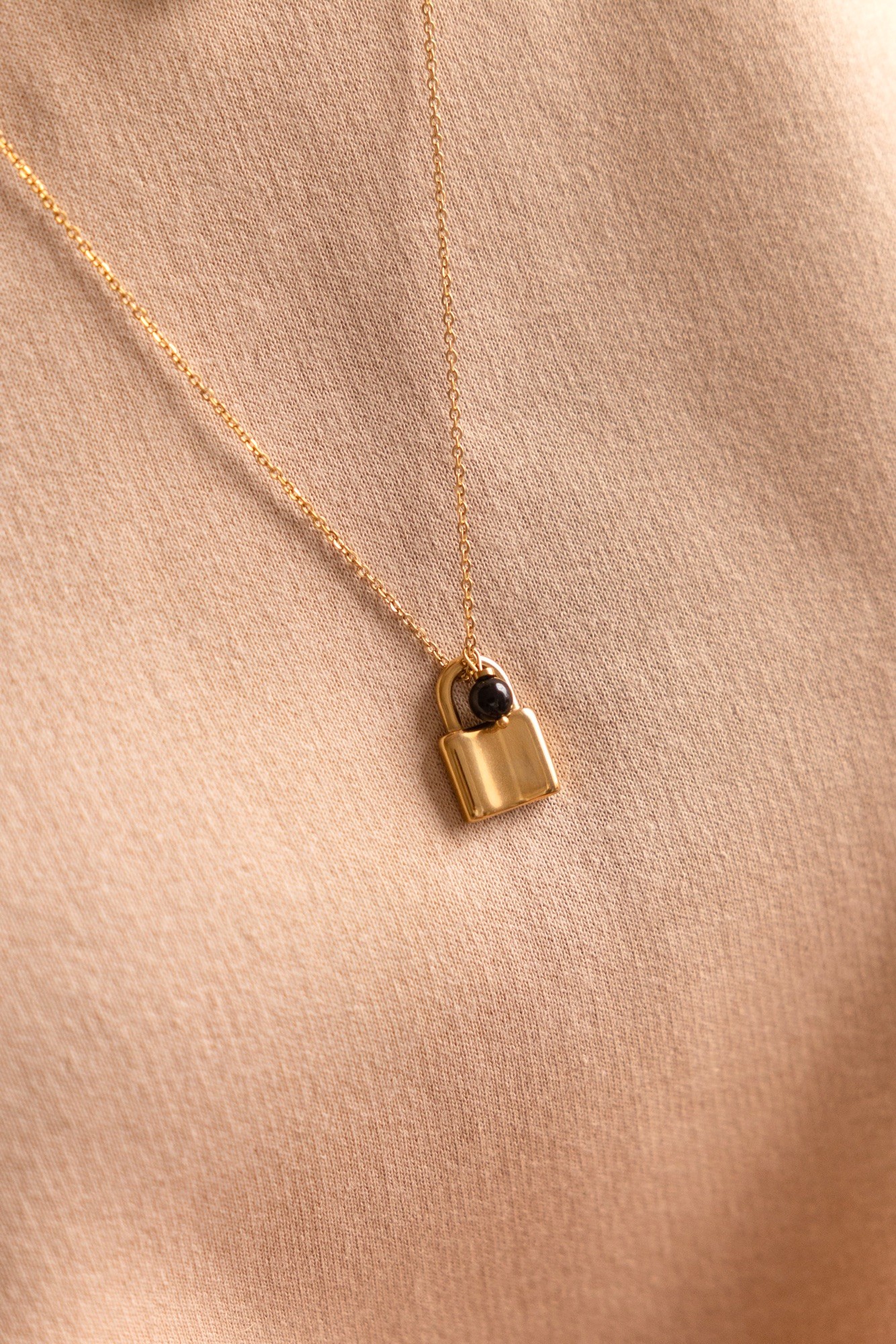 Łańcuszek z kłódką „Lock me” – Turmalin czarny, stal szlachetna pozłacana