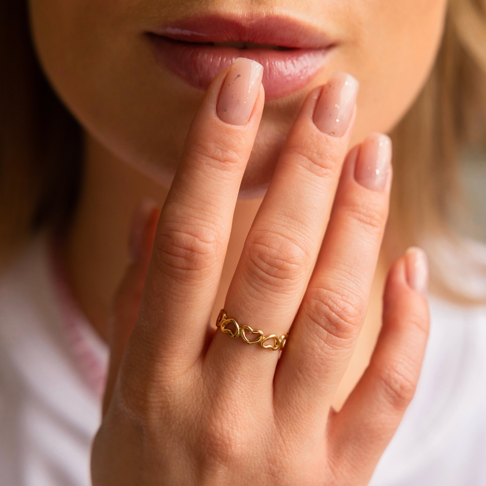 Pierścionek obrączka „Heart chain” – pierścionek ze stali szlachetnej pozłacanej