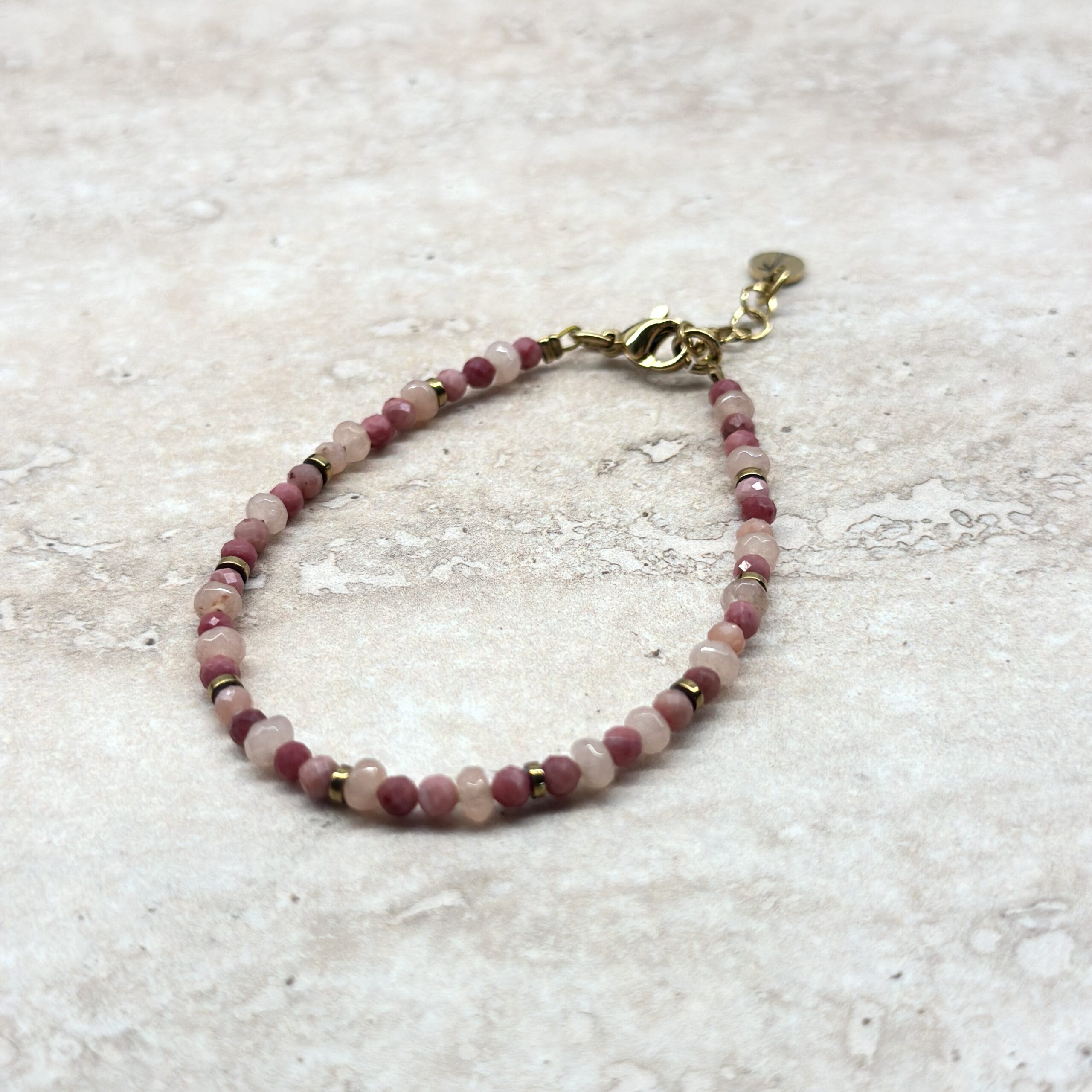Ultra kobieca bransoletka wykonana z kamieni naturalnych: Kwarcu różowego, Rodonitu i Hematytu